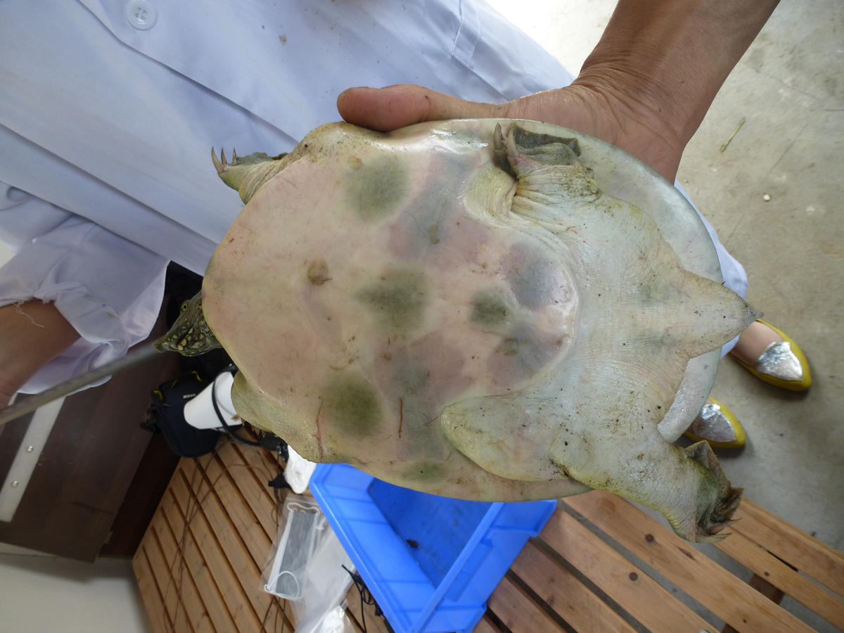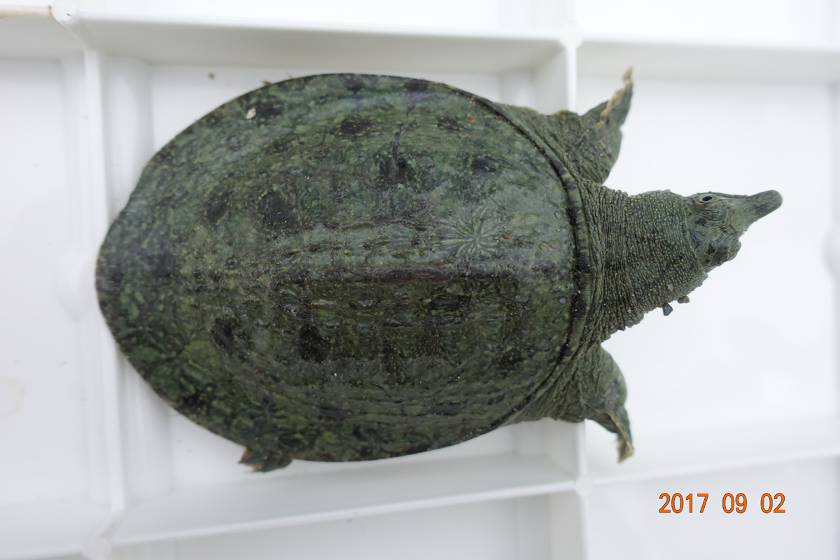 外形描述:长江鳖腹甲多为白色,深青色斑深而明显,呈不规则分布。长江鳖苗体型为前窄后宽的梯形,背面橄榄色,腹面有规则的黑色斑点,裙边较软,后部较宽,规格较整齐。